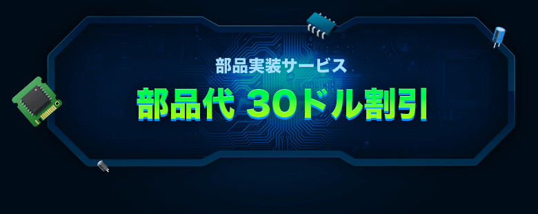 1.部品代:30ドル以上の実装案件に対して、部品代 30ドル割引が利用できます。